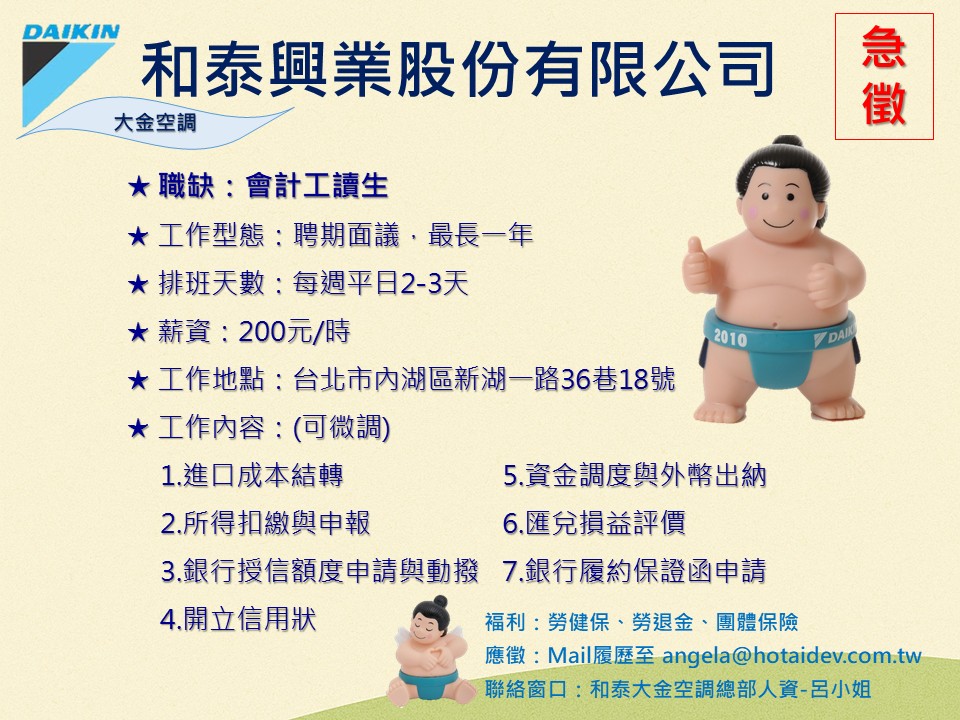 【工讀】【會計工讀生】和泰興業股份有限公司